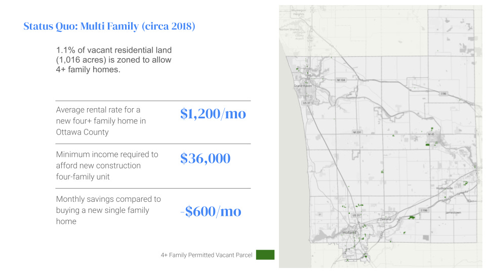 So, because we had a housing needs assessment in hand that told us where we were falling short, we began a multi-year campaign to encourage local units of government to amend their zoning ordinances and allow more rental options. And, we knew enough about local land use infrastructure to understand that we didn’t need massive rezonings of entire neighborhoods - we needed about another 1% of the land area to be available for more housing options. We also knew that it would make the most sense if we focused on places that were already close to existing community amenities, infrastructure, and jobs centers.