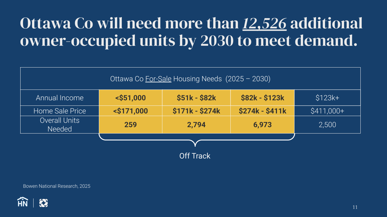 In Ottawa County, Michigan we hired Bowen National Research to conduct our first housing needs assessment in 2018 and discovered that the community had a significant shortage of rental options priced affordably for middle-income households. At the time, we needed a whole lot more studio and one-bedroom apartments for all the young professionals who were taking jobs in manufacturing, engineering, education, and the medical fields.